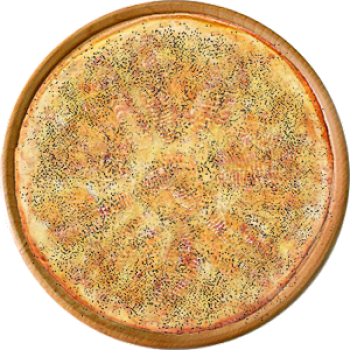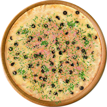 Основа: Традиционная (толстое тесто ⌀35см) (650 г) Соус: Соус белый (100 г) Топпинги: Балык (50 г), Сырное ассорти (50 г), Маслины (50 г) Доп. топпинги: Зелень (10 г), Кунжут (10 г)