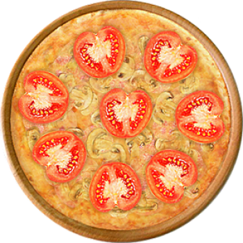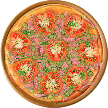 Основа: Традиционная (толстое тесто ⌀35см) (650 г) Соус: Соус красный (100 г) Топпинги: Ветчина (50 г), Салями (50 г), Шампиньоны (50 г), Сыр (50 г), Сырное ассорти (50 г), Помидоры (50 г) Доп. топпинги: - нет -