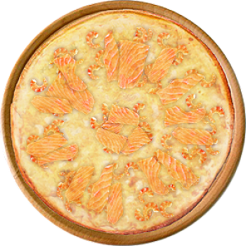 Основа: Итальянская (тонкое тесто ⌀35см) (400 г) Соус: Соус белый (100 г) Топпинги: Креветки (50 г), Сырное ассорти (50 г), Лосось (100 г) Доп. топпинги: - нет -