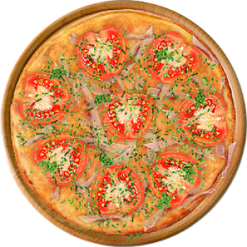 Основа: Итальянская (тонкое тесто ⌀35см) (400 г) Соус: Соус красный (100 г) Топпинги: Бекон (50 г), Сыр (50 г), Помидоры (50 г) Доп. топпинги: Зелень (10 г)