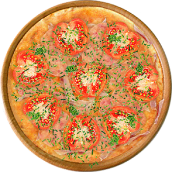 Основа: Традиционная (толстое тесто ⌀35см) (650 г) Соус: Соус красный (100 г) Топпинги: Бекон (50 г), Помидоры (50 г), Ветчина (100 г), Сыр (100 г) Доп. топпинги: Зелень (10 г)