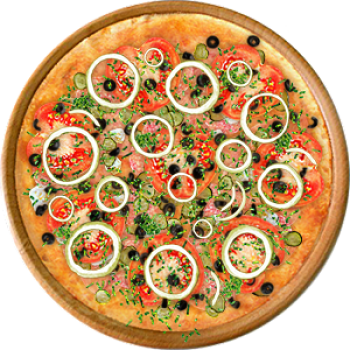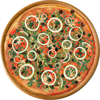 Основа: Итальянская (тонкое тесто ⌀35см) (400 г) Соус: Соус чили (100 г) Топпинги: Ветчина (50 г), Салями (50 г), Шампиньоны (50 г), Сыр (50 г), Огурчики (50 г), Помидоры (50 г), Маслины (50 г), Балык (100 г) Доп. топпинги: Лук зелёный (20 г), Лук репчатый (35 г)
