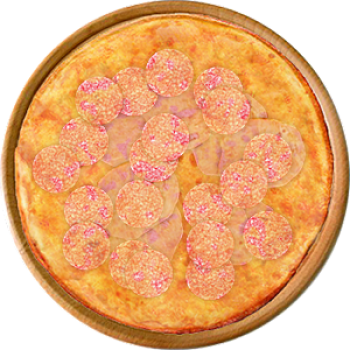 Основа: Итальянская (тонкое тесто ⌀35см) (400 г) Соус: Соус красный (100 г) Топпинги: Балык (50 г), Сырное ассорти (50 г), Салями (150 г) Доп. топпинги: - нет -