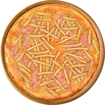 Основа: Итальянская (тонкое тесто ⌀35см) (400 г) Соус: Соус красный (100 г) Топпинги: Ветчина (50 г), Сыр (50 г), Картофель фри (100 г) Доп. топпинги: - нет -