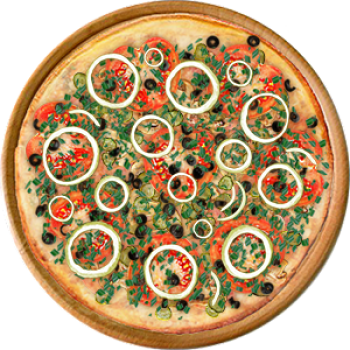 Основа: Итальянская (тонкое тесто ⌀35см) (400 г) Соус: Соус красный (100 г) Топпинги: Балык (50 г), Шампиньоны (50 г), Сыр (50 г), Огурчики (50 г), Помидоры (50 г), Маслины (50 г), Ветчина (100 г) Доп. топпинги: Лук зелёный (20 г), Лук репчатый (35 г)
