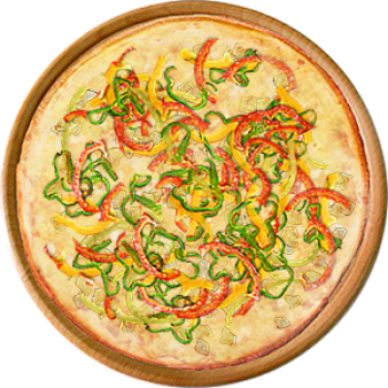 Основа: Итальянская (тонкое тесто ⌀35см) (400 г) Соус: Соус белый (100 г) Топпинги: Курица копченая (50 г), Сырное ассорти (50 г), Болгарский перец (50 г) Доп. топпинги: - нет -