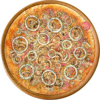 Основа: Итальянская (тонкое тесто ⌀35см) (400 г) Соус: Соус красный (100 г) Топпинги: Ветчина (50 г), Грибное ассорти (50 г), Сырное ассорти (50 г) Доп. топпинги: - нет -