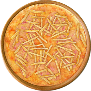 Основа: Традиционная (толстое тесто ⌀35см) (650 г) Соус: Соус красный (100 г) Топпинги: Ветчина (50 г), Сырное ассорти (50 г), Картофель фри (50 г) Доп. топпинги: - нет -