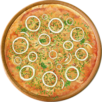 Основа: Традиционная (толстое тесто ⌀35см) (650 г) Соус: Соус чили (100 г) Топпинги: Шампиньоны (50 г), Сыр (50 г), Сырное ассорти (50 г) Доп. топпинги: Зелень (10 г), Лук репчатый (35 г)