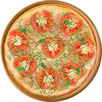 Основа: Итальянская (тонкое тесто ⌀35см) (400 г) Соус: Соус красный (100 г) Топпинги: Помидоры (50 г), Ветчина (100 г), Курица копченая (100 г), Сыр (100 г) Доп. топпинги: Зелень (10 г)