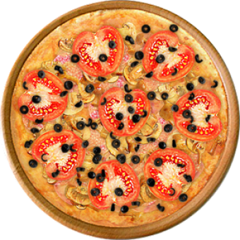 Основа: Традиционная (толстое тесто ⌀35см) (650 г) Соус: Соус красный (100 г) Топпинги: Салями (50 г), Грибное ассорти (50 г), Сырное ассорти (50 г), Помидоры (50 г), Маслины (50 г), Ветчина (100 г) Доп. топпинги: - нет -