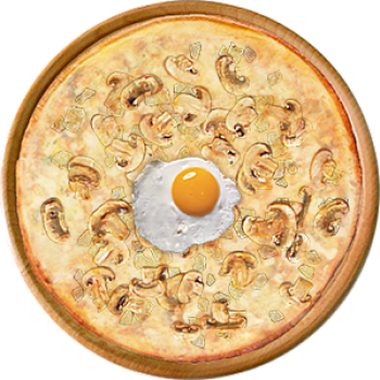 Основа: Итальянская (тонкое тесто ⌀35см) (400 г) Соус: Соус белый (100 г) Топпинги: Шампиньоны (50 г), Курица копченая (100 г), Сыр (100 г), Яйцо куриное (100 г) Доп. топпинги: - нет -
