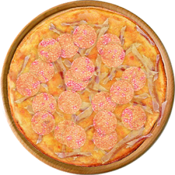 Основа: Итальянская (тонкое тесто ⌀35см) (400 г) Соус: Соус красный (100 г) Топпинги: Ветчина (50 г), Грибное ассорти (50 г), Сырное ассорти (50 г) Доп. топпинги: Лук репчатый (35 г)