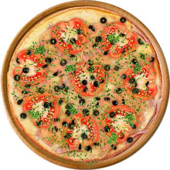 Основа: Итальянская (тонкое тесто ⌀35см) (400 г) Соус: Соус белый (100 г) Топпинги: Сырное ассорти (50 г), Помидоры (50 г), Маслины (50 г), Бекон (100 г), Ветчина (100 г) Доп. топпинги: Зелень (10 г)
