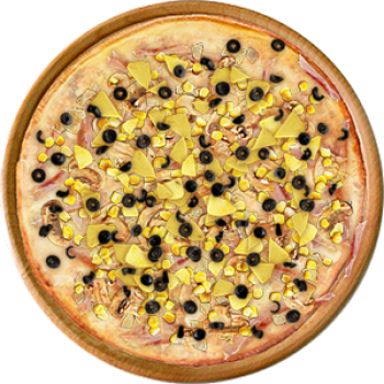 Основа: Итальянская (тонкое тесто ⌀35см) (400 г) Соус: Соус белый (100 г) Топпинги: Бекон (50 г), Курица копченая (50 г), Шампиньоны (50 г), Кукуруза (50 г), Ананасы (50 г), Маслины (50 г), Сыр (100 г) Доп. топпинги: - нет -