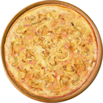 Основа: Итальянская (тонкое тесто ⌀35см) (400 г) Соус: Соус белый (100 г) Топпинги: Ветчина (50 г), Грибное ассорти (50 г), Сыр (50 г), Сырное ассорти (50 г) Доп. топпинги: - нет -