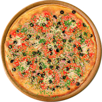 Основа: Итальянская (тонкое тесто ⌀35см) (400 г) Соус: Соус красный (100 г) Топпинги: Салями (50 г), Шампиньоны (50 г), Сыр (50 г), Помидоры (50 г), Маслины (50 г) Доп. топпинги: Зелень (10 г), Кунжут (10 г)