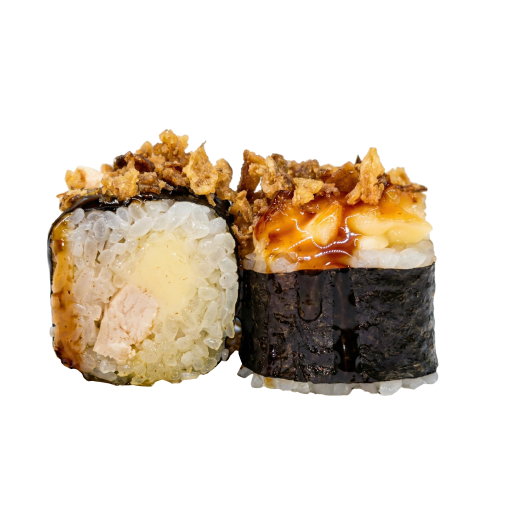 Рис, нори, копчёная курица, сыр. шапочка, соус унаги, кунжут – 8 шт.